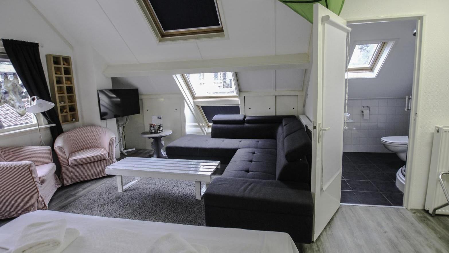 Dieses Zimmer befindet sich im Garten. Dieses Zimmer ist mit Dusche, WC, TV, Sitzecke mit Sofa und 1 Doppelbett und 2 Einzelbetten ausgestattet.